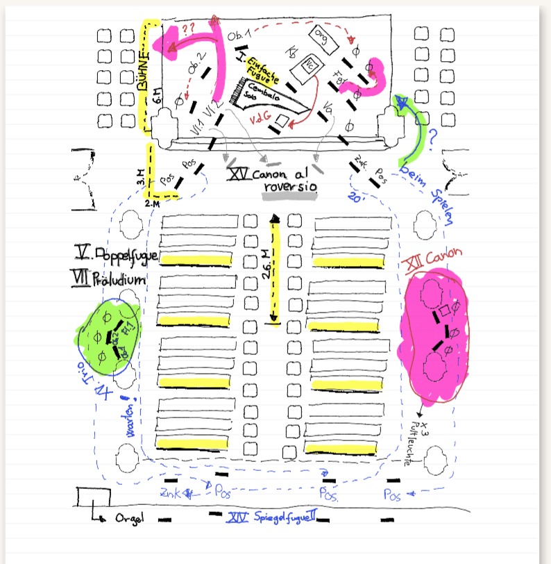 Auch musikalisch bilden Klangräume ein zentrale Überschrift. Die Komponisten der venezianischen Mehrchörigkeit (Abschlusskonzert der Saison) machten den Raumklang über verschiedene Aufstellungen und Echo-Effekte zum Thema. So interpretieren wir auch Bachs »Kunst der Fuge« im Eröffnungskonzert mit Musiker:innen in Bewegung. Das Publikum wird Teil des Klangraumes und hört die komplexen Fugenstrukturen mehrdimensional.